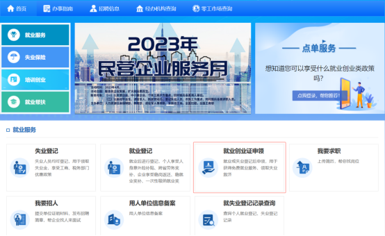 ①登录福建省公共就业服务网,选择“就业创业证申领”;