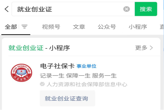 1.通过微信小程序“电子社保卡”查询。选择“人社办事”-“就业创业”-“就业创业证查询”;也可直接检索“就业创业证查询”,登录后输入证书编号即可查看。