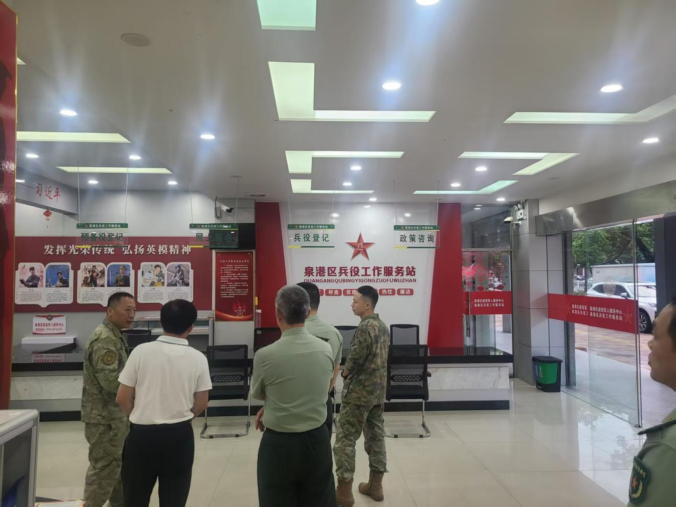 在泉港区退役军人服务中心负责人的介绍下,洛江区人武部一行实地参观了区退役军人服务中心的综合服务大厅、“图书角”“暖心驿站”等功能室及区兵役工作服务站,详细了解了“退役军人服务站+兵役工作服务站”的试点建设工作运行情况、特色亮点工作和就业创业扶持、权益维护保障等方面工作的开展情况,并对“退役军人服务站+兵役工作服务站”试点工作成效给予了高度肯定。