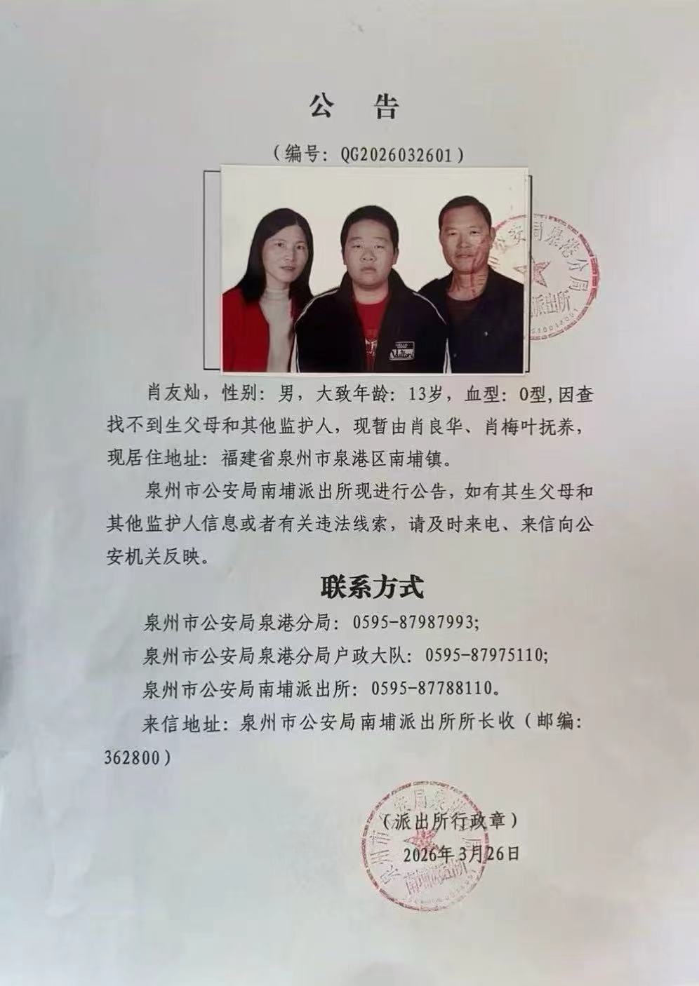 公告(编号:QG2026032601)