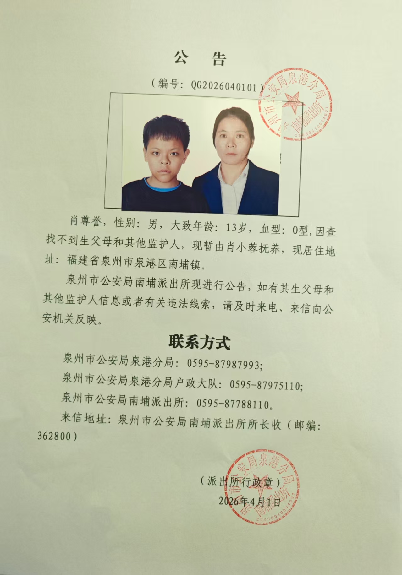 公告(编号:QG2026040101)