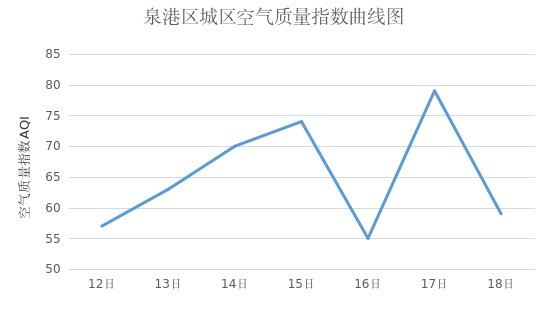 过去一周,泉港区空气质量按照国家《环境空气质量标准》评价,1月12日(周一)至1月18日(周日)为二级(良),首要污染物为O3。AQI最大的是周六为79,最小的是周五为55。